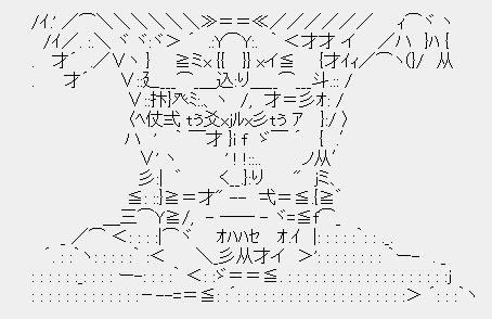 _ /⌒ <: : : :|⌒ヾ オハハセ オ.イ |: : : : :`: : ._.
