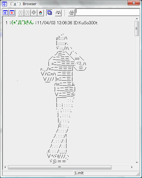 なんかかんか作った時に報告するブログ。 現在はAA・やる夫関連。 出没場所:VIP、やる夫Ⅱ、ヒロイン板等