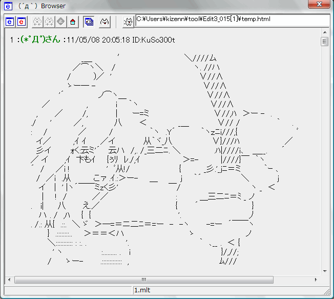 なんかかんか作った時に報告するブログ。 現在はAA・やる夫関連。 出没場所:VIP、やる夫Ⅱ、ヒロイン板等