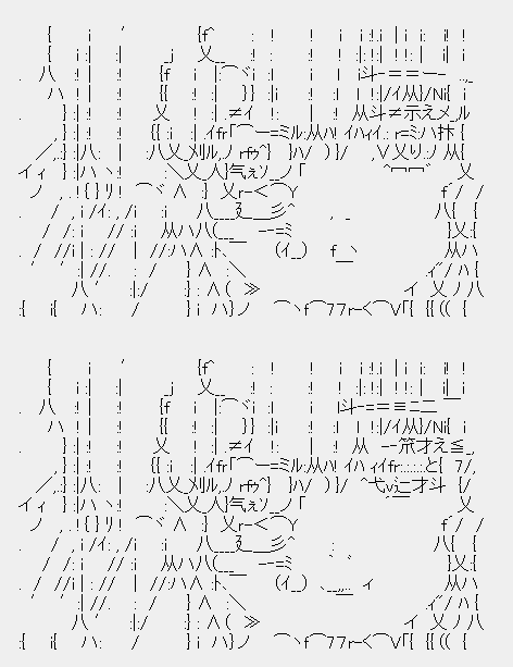 {{ハ}: /:i:7イ i :i |i !:ハハ : } ′ <才i/ハi/ ハ___ ブ :} :} }