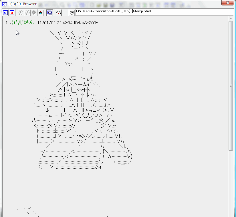 なんかかんか作った時に報告するブログ。 現在はAA・やる夫関連。 出没場所:VIP、やる夫Ⅱ、ヒロイン板等