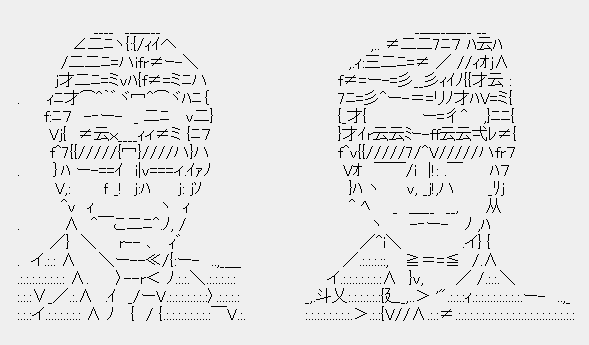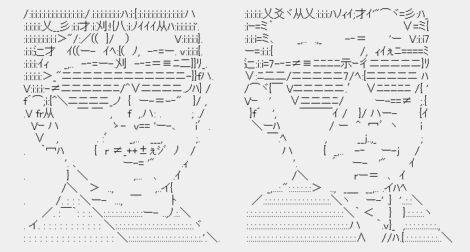 :.:.:∨_/.:.∧ .イ _/ーV.:.:.:.:.:.:.:〉.:.:.:.:       _,.斗乂:.:.:.:.:.:{廴_,..> '".:.:.:ィ.:.:.:.:.:.:.:.:.ー- ..,_