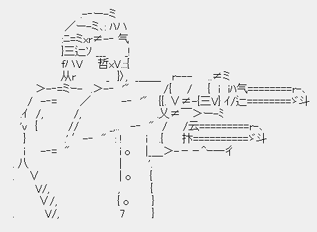 爿´ ̄`}}⌒{{ ´ ゙̄ }}=< {ー } リ