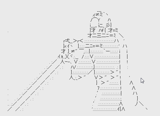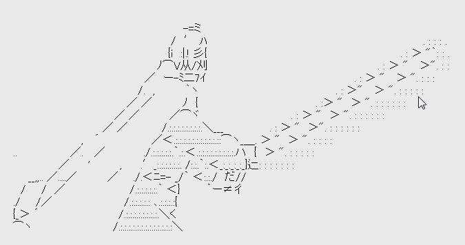 __,,.. /..../ / ./.<ニ=- _/` <:.:./ だ//