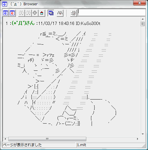 なんかかんか作った時に報告するブログ。 現在はAA・やる夫関連。 出没場所:VIP、やる夫Ⅱ、ヒロイン板等