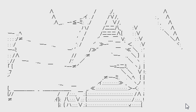 ⌒ヾ } .∨.:.:.:.∧. \ /.イ /.:.:.:.:.